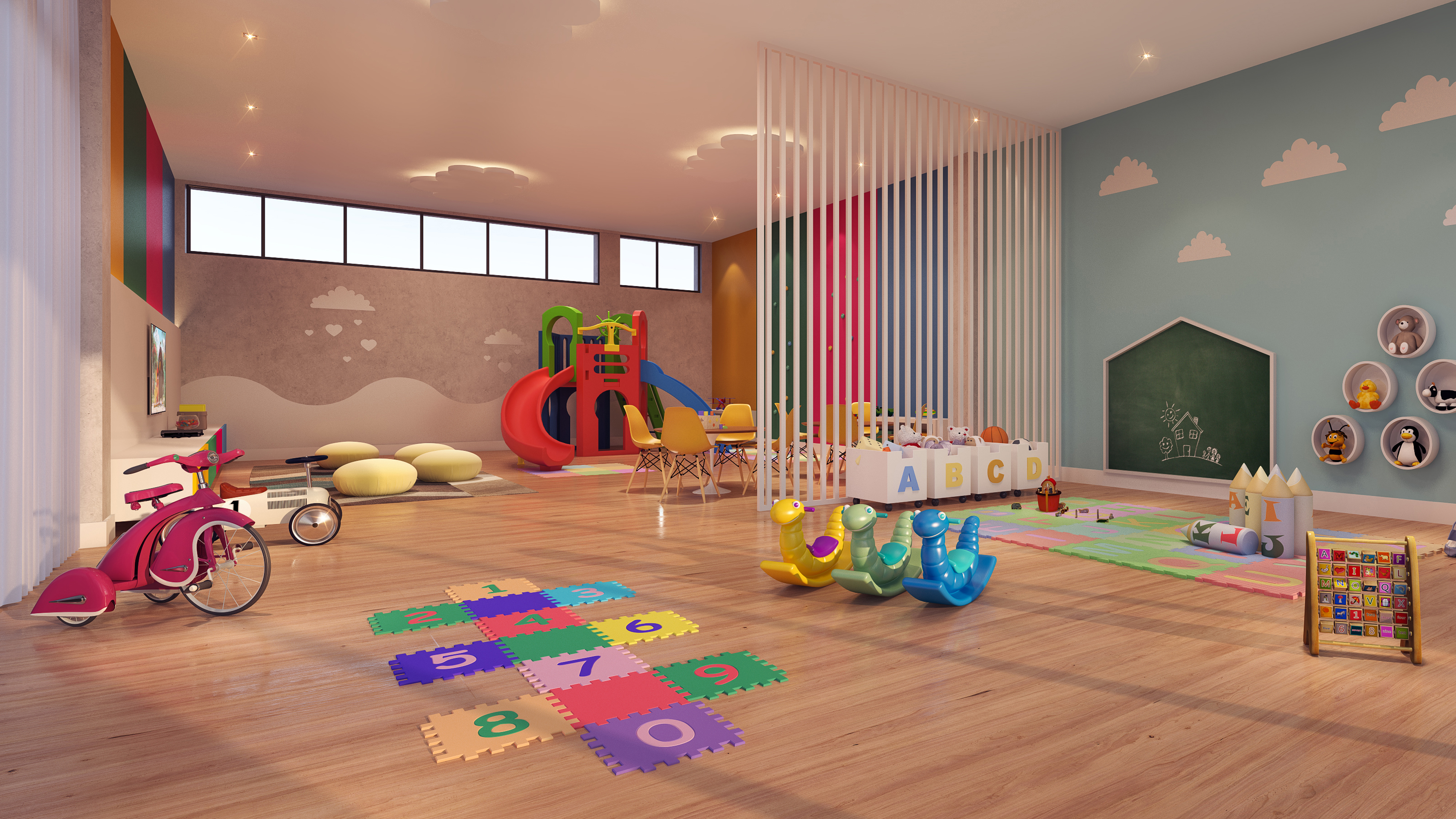 As áreas de lazer contemplam duas piscinas, um playground seco e molhado, uma academia, um spa, um bar, um restaurante, uma brinquedoteca, um espaço teen, uma sauna, um salão de jogo, com uma equipe de monitores para animar seu tempo livre em família.